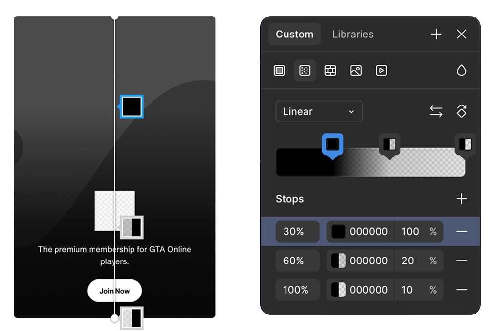By defining a consistent mask with clear color stops and a single base color, designers in Figma can now match gradients to an image’s color tone instead of defaulting to flat black. In code, this becomes one predictable tokenized value instead of a pile of one-off gradients.