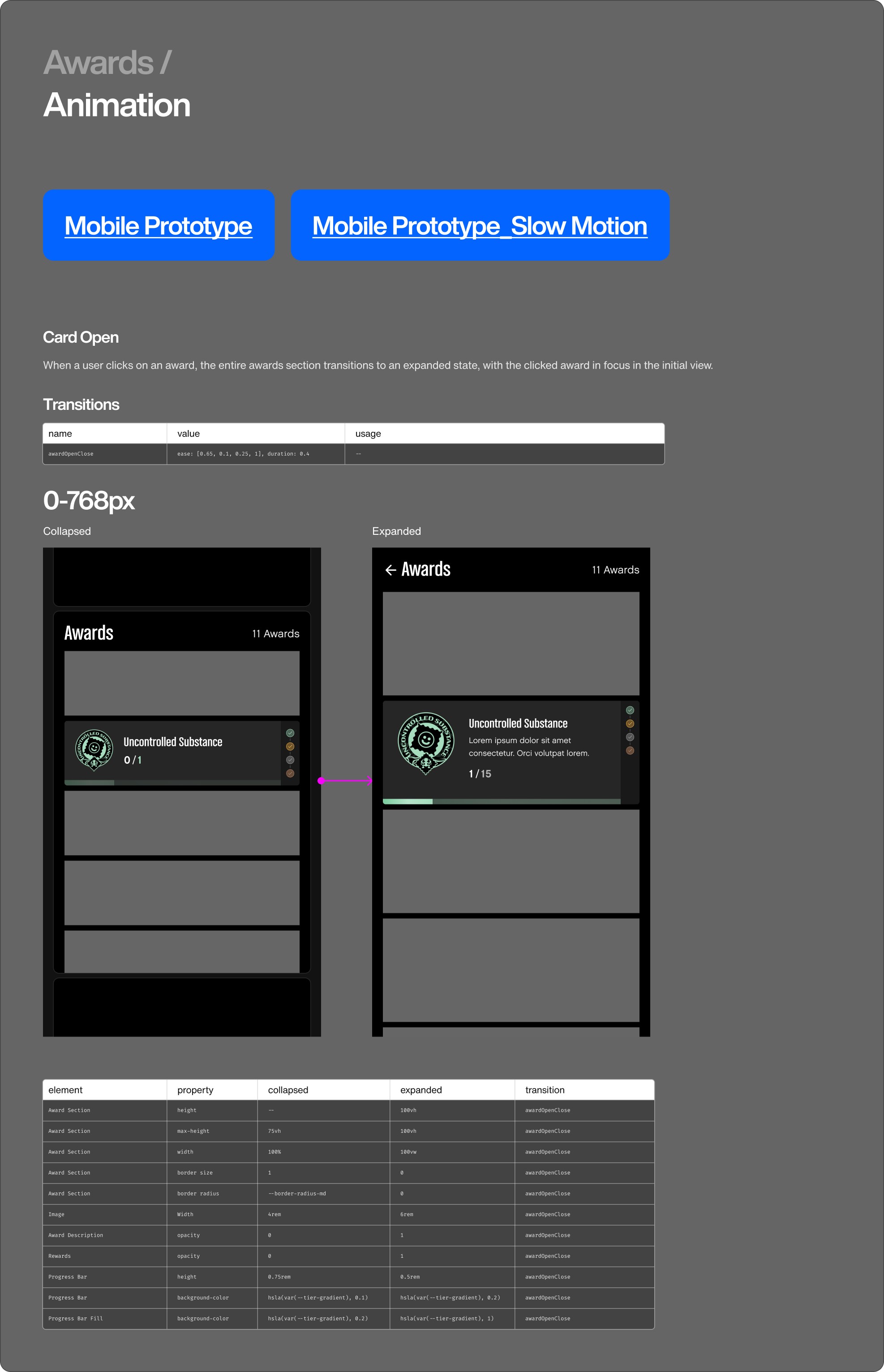 We defined a collapsed state for high-level progression and an expanded state for detailed instructions. I built quick prototypes to test transitions, timing, and interaction patterns, then iterated until the reveal of information felt right.