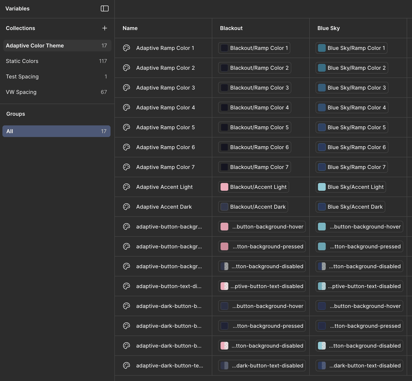 I created the foundations for these themes so they could scale: background gradients, buttons, and states all pull from the same set of adaptive color variables. This keeps the experience consistent while still giving each story its own visual voice.